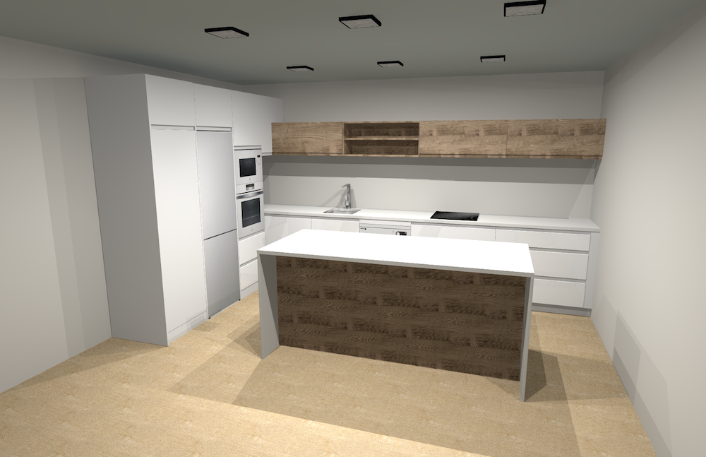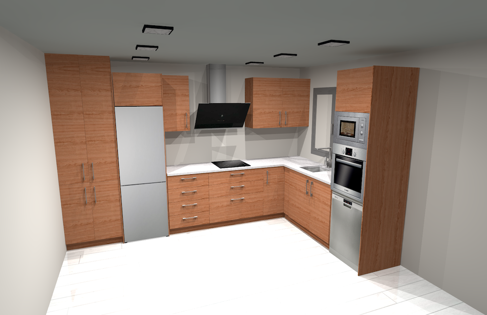 Disponemos de un programa de diseño 3D de alta calidad, donde podrá ver una pequeña recreación de cómo podría quedar su cocina o armario, realizando cambios de colores y distribución, para acercarnos a la idea del cliente.